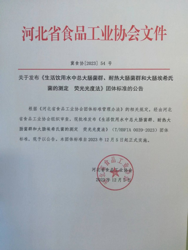 以上為河北省食品工業(yè)協(xié)會(huì)關(guān)于發(fā)布《生活飲用水中總大腸菌群、耐熱大腸菌群和大腸埃希氏菌的測(cè)定 熒光光度法》團(tuán)體標(biāo)準(zhǔn)的公告(冀食協(xié)[2023]54號(hào))的檢測(cè)服務(wù)介紹,如有其他疑問可聯(lián)系在線工程師!