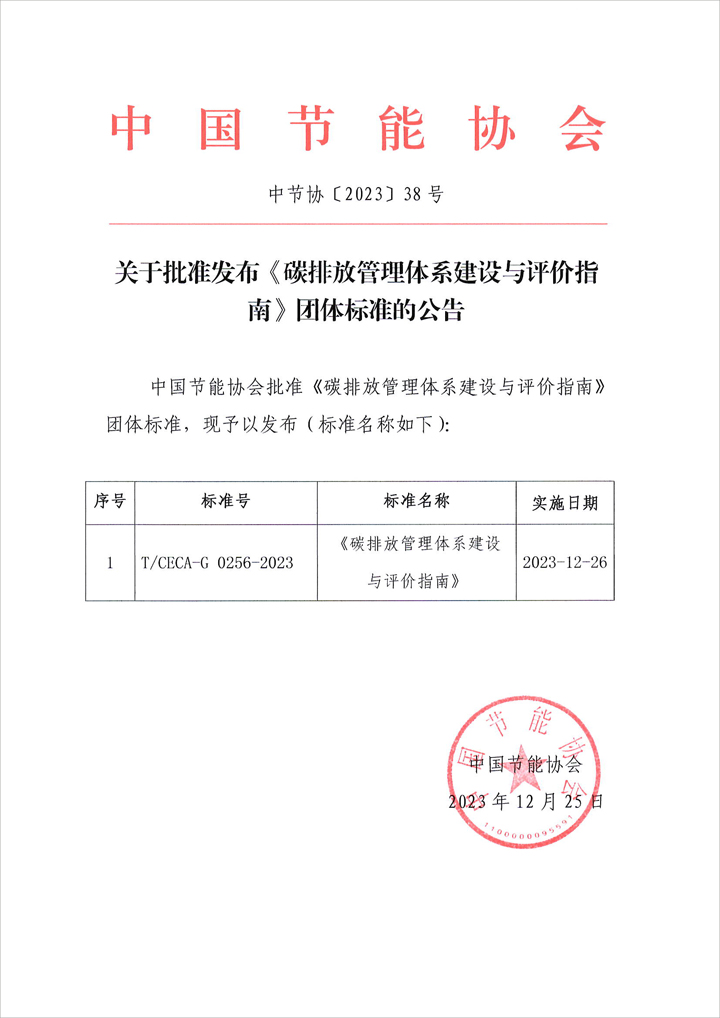關(guān)于批準發(fā)布《碳排放管理體系建設(shè)與評價指南》團體標準的公告.PDF