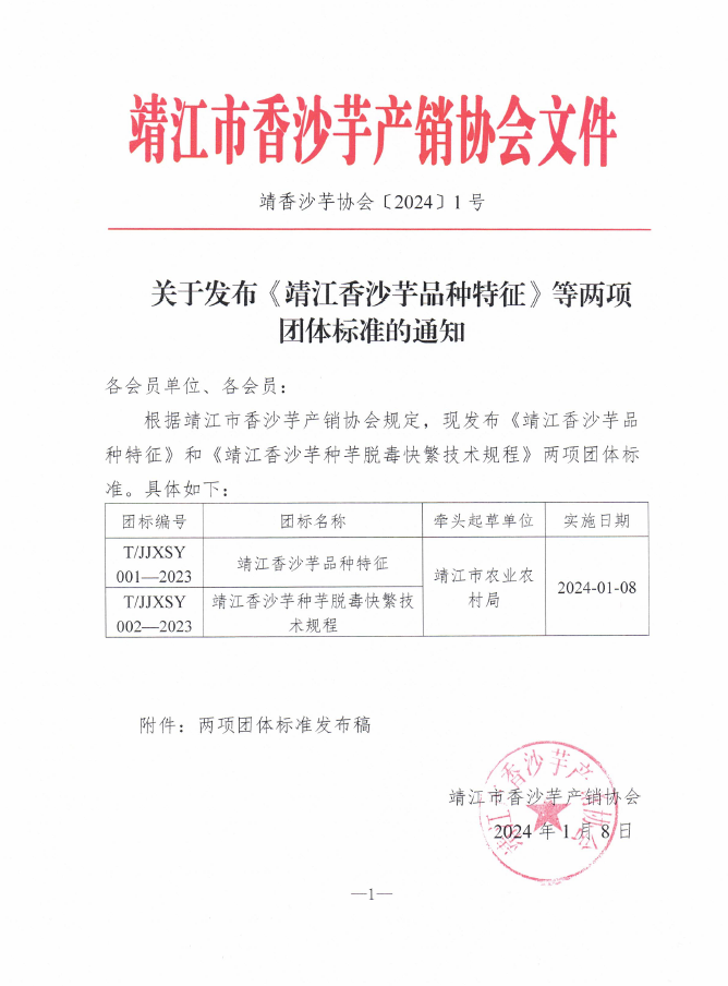 以上為靖江市香沙芋產銷協會關于發布《靖江香沙芋品種特征》等兩項團體標準的通知(靖香沙芋協會[2024]1號)的檢測服務介紹,如有其他疑問可聯系在線工程師!