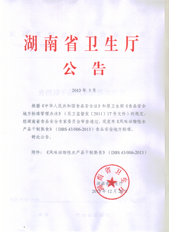 本文關鍵詞:湖南省衛生廳發布食品安全地方標準DBS43/ 006-2013 湖南省衛生廳公告 2013年5號,標準公告 本文鏈接:http://www.eshzyl.cn/jcxm/bzgg/2025-01-24/13519.html