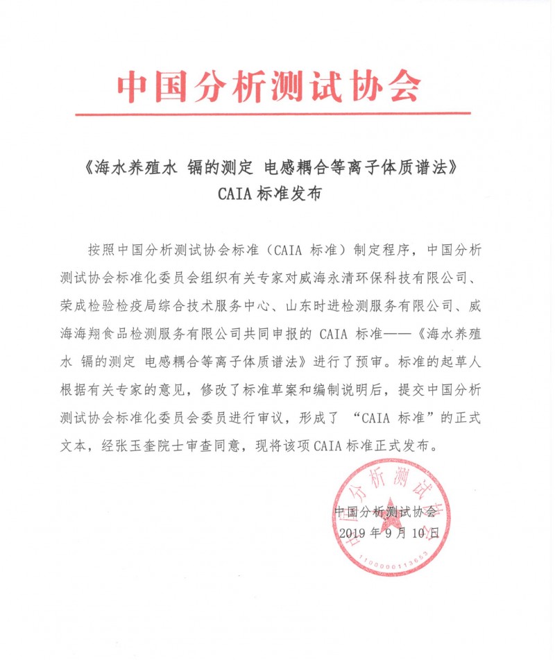 以上為中國(guó)分析測(cè)試協(xié)會(huì)關(guān)于《海水養(yǎng)殖水 鎘的測(cè)定 電感耦合等離子體質(zhì)譜法》CAIA標(biāo)準(zhǔn)的發(fā)布的檢測(cè)服務(wù)介紹,如有其他疑問(wèn)可聯(lián)系在線工程師!