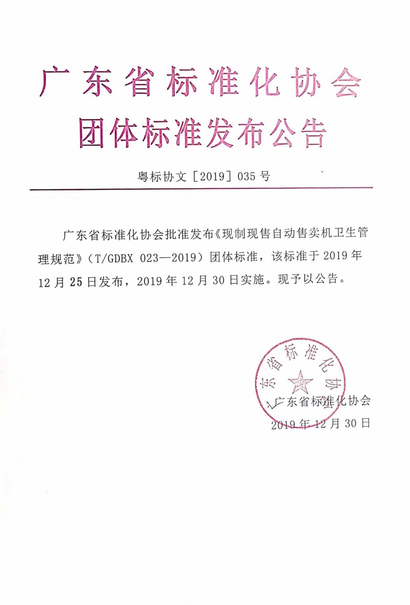 《現制現售自動售賣機衛生管理規范》T/GDBX 023-2019