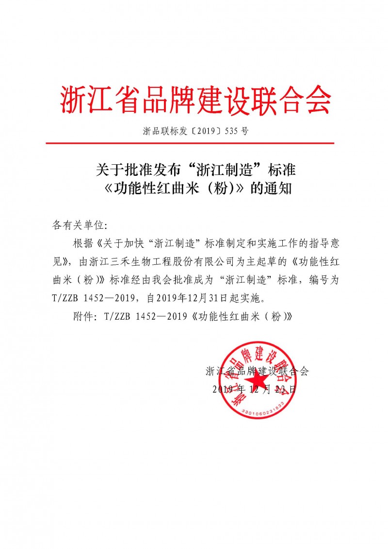 以上為浙江省品牌建設聯合會關于批準發布“浙江制造”標準《功能性紅曲米(粉)》的通知(浙品聯標發〔2019〕535號)的檢測服務介紹,如有其他疑問可聯系在線工程師!