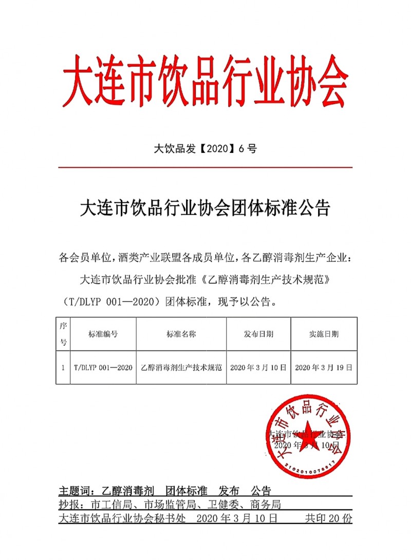 本文關鍵詞:大連市飲品行業協會發布《乙醇消毒劑生產技術規范》團體標準的公告(大飲品發[2020] 6號),標準公告 本文鏈接:http://www.eshzyl.cn/jcxm/bzgg/2025-02-10/15442.html