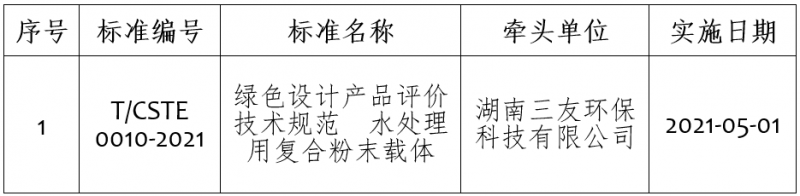 附件下載: 2021(16號文)關于批準發布《綠色設計產品評價技術規范 水處理用復合粉末載體》團體標準的公告