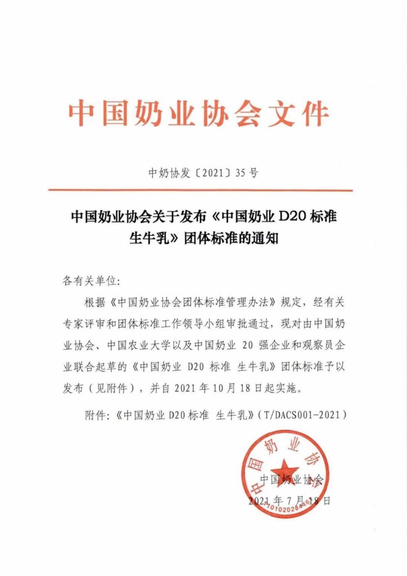 以上為中國奶業協會關于發布《中國奶業D20標準 生牛乳》團體標準的通知(中奶協發〔2021〕35號)的檢測服務介紹,如有其他疑問可聯系在線工程師!