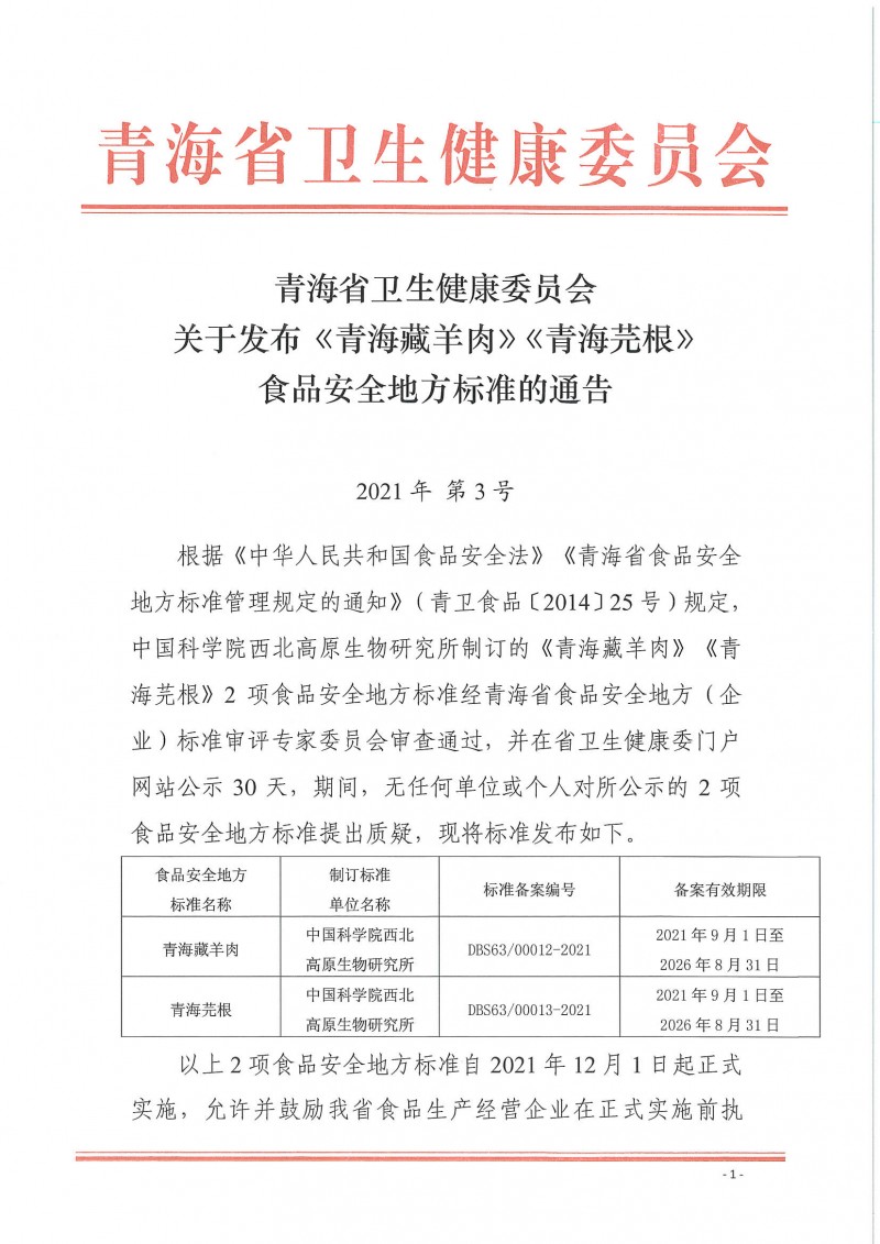DBS63/ 00013-2021 食品安全地方標準 青海芫根