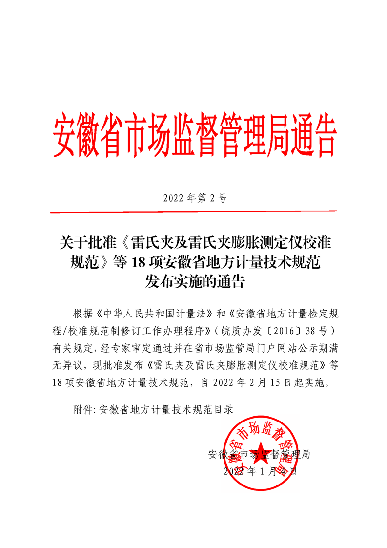 以上為安徽省市場監(jiān)督管理局關于批準《全自動凱氏定氮儀校準規(guī)范》等18項安徽省地方計量技術規(guī)范發(fā)布實施的通告(2022年第2號)的檢測服務介紹,如有其他疑問可聯(lián)系在線工程師!