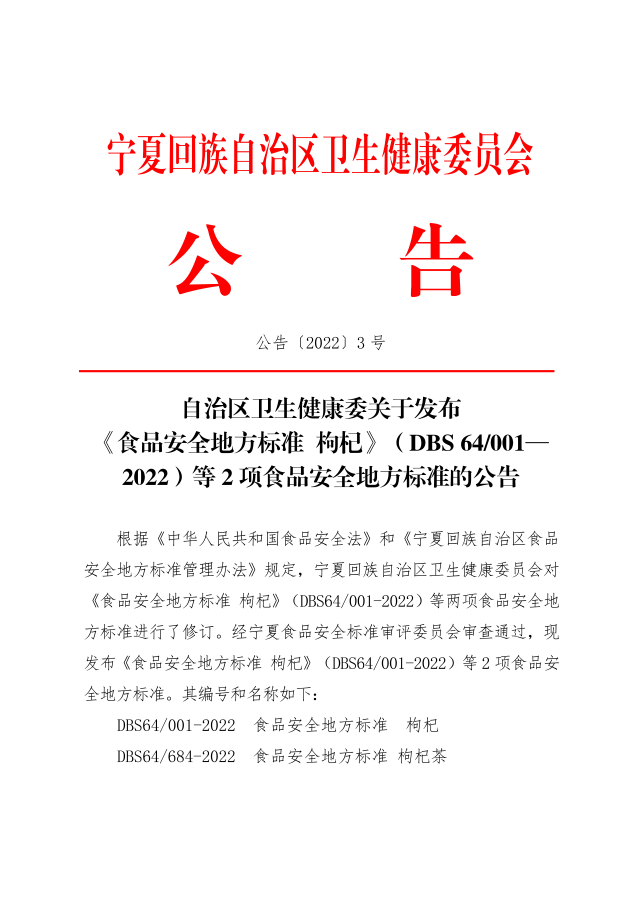DBS64/ 001-2022 食品安全地方標準 枸杞