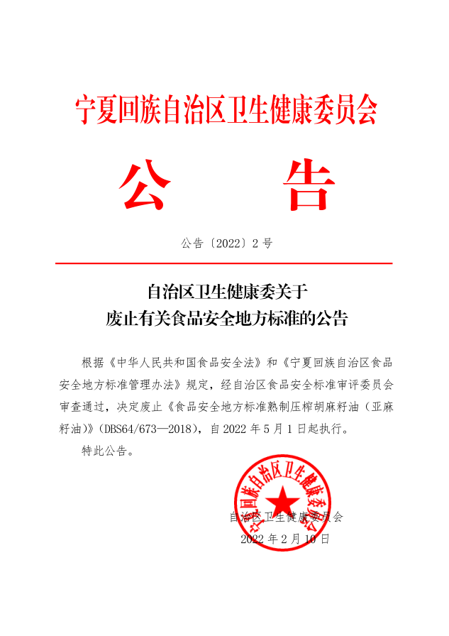 以上為寧夏回族自治區衛生健康委員會關于廢止《食品安全地方標準 熟制壓榨胡麻籽油(亞麻籽油)》的公告(公告〔2022〕2號)的檢測服務介紹,如有其他疑問可聯系在線工程師!