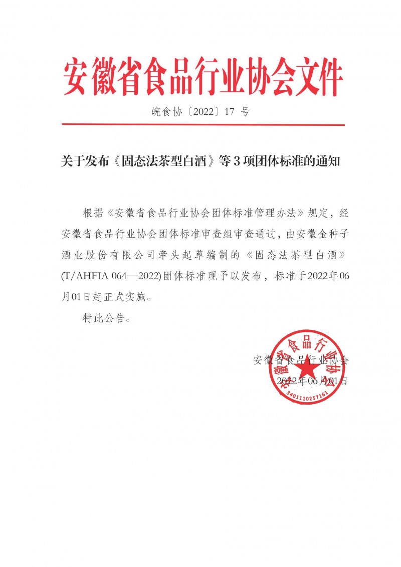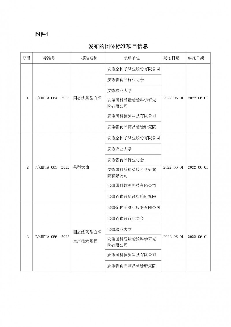 T/AHFIA 064-2022 固態法茶型白酒 T/AHFIA 065-2022 茶型大曲 T/AHFIA 066-2022 固態法茶型白酒生產技術規程