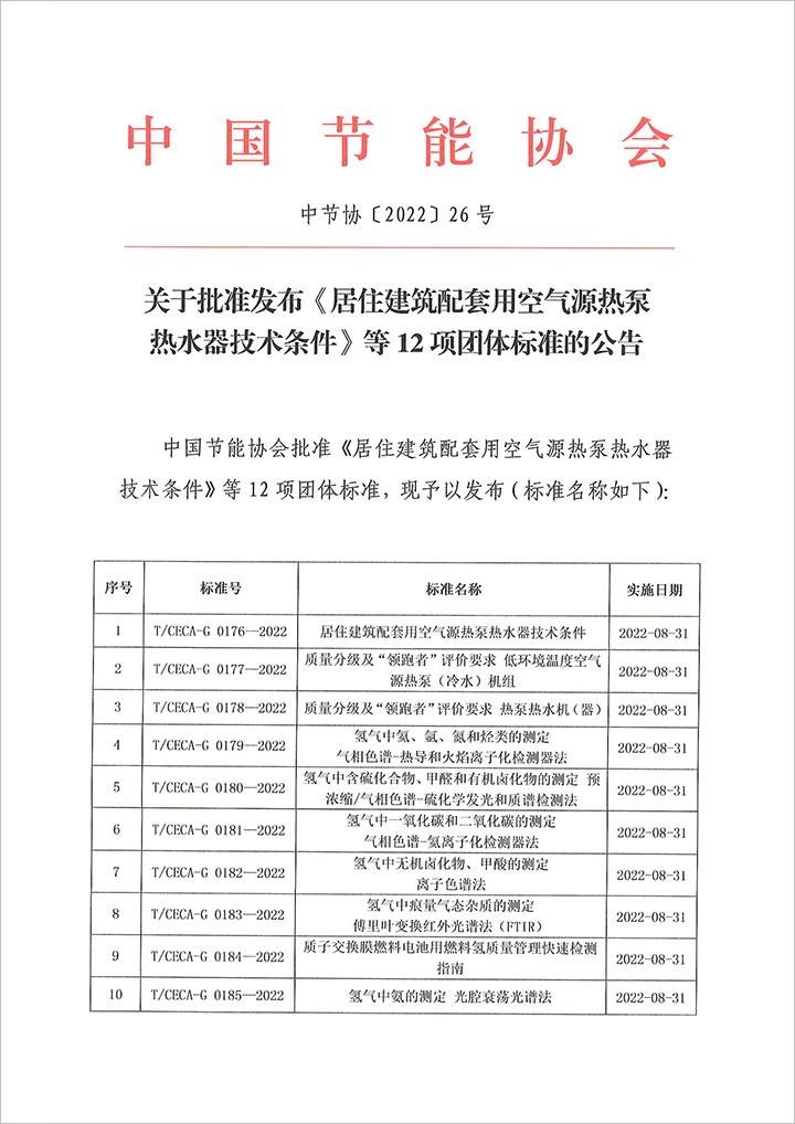 以上為中國節能協會關于批準發布《居住建筑配套用空氣源熱泵熱水器技術條件》等12項團體標準的公告(中節協〔2022〕26號)的檢測服務介紹,如有其他疑問可聯系在線工程師!