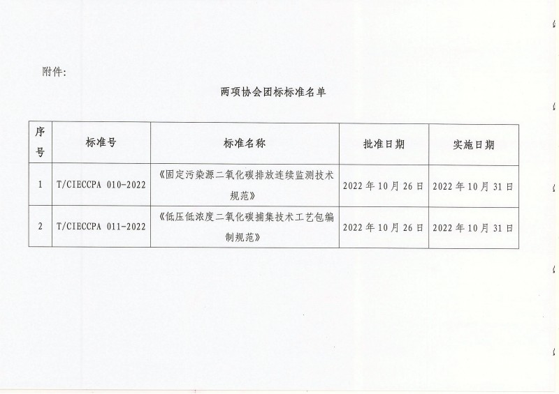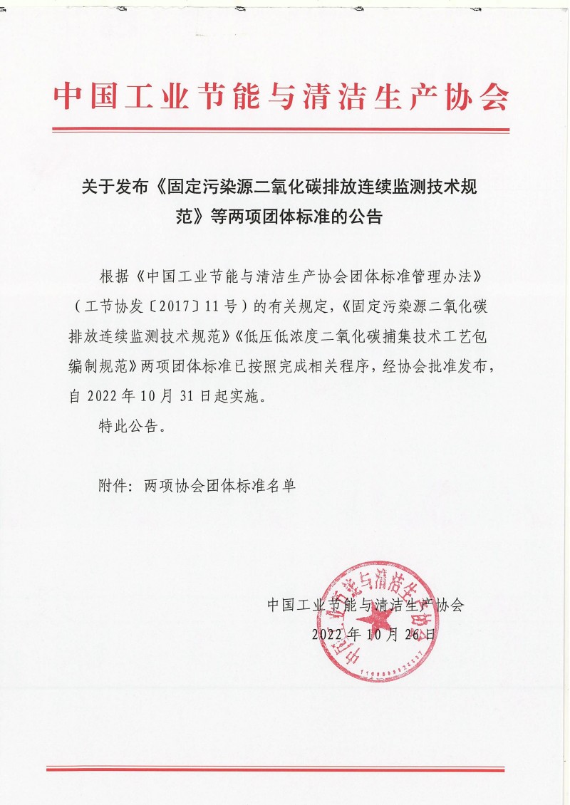 T/CIECCPA 010-2022 固定污染源二氧化碳排放連續監測技術規范 T/CIECCPA 011-2022 低壓低濃度二氧化碳捕集技術工藝包編制規范