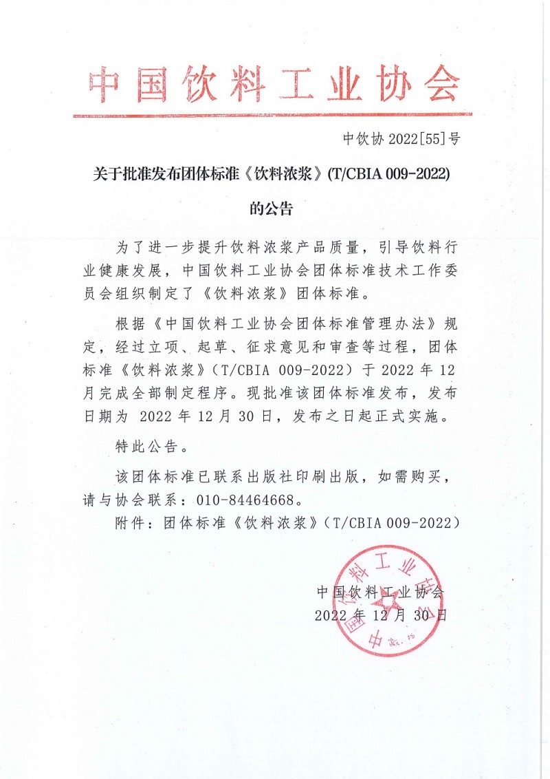 以上為中國飲料工業協會關于批準發布團體標準《飲料濃漿》(T/CBIA 009-2022) 的公告(中飲協2022[55]號)的檢測服務介紹,如有其他疑問可聯系在線工程師!