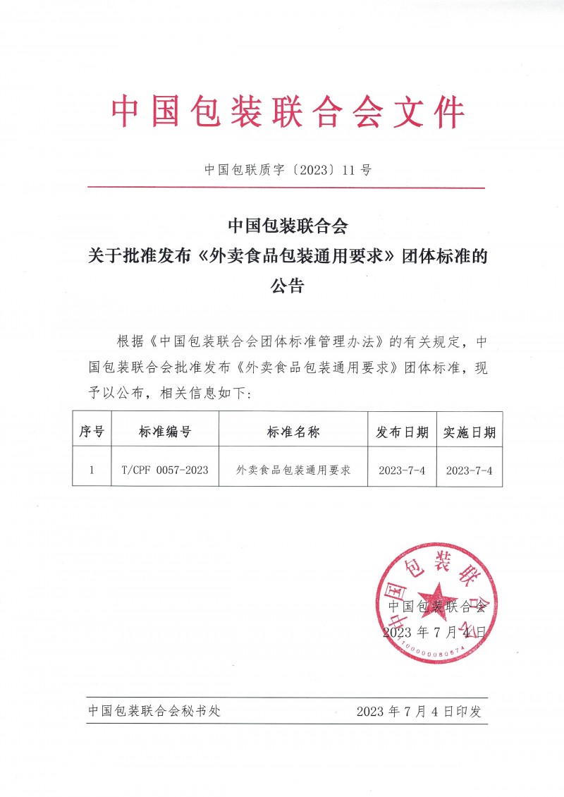 以上為中國包裝聯合會關于批準發布《外賣食品包裝通用要求》團體標準的公告(中國包聯質字[2023]11號)的檢測服務介紹,如有其他疑問可聯系在線工程師!