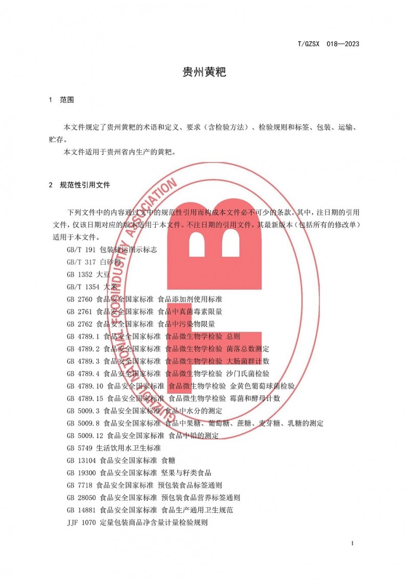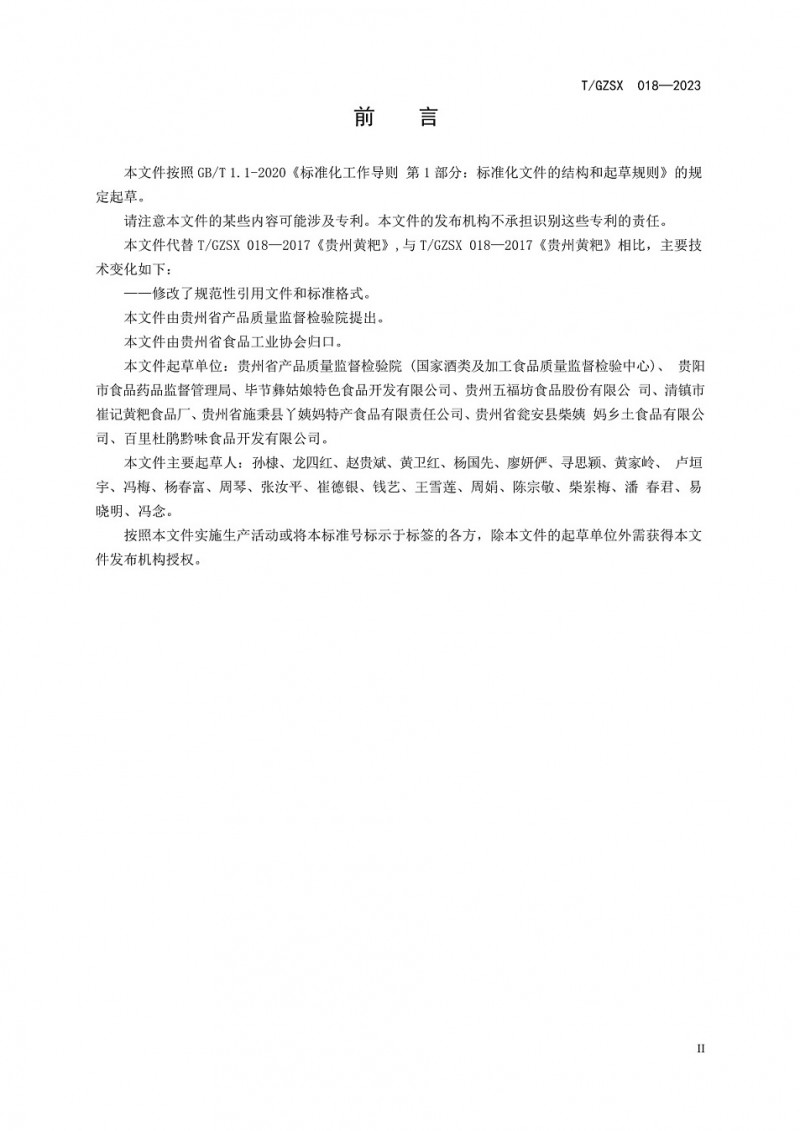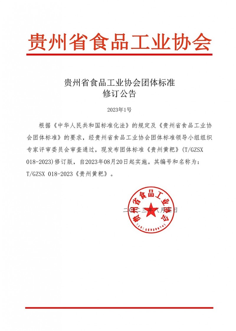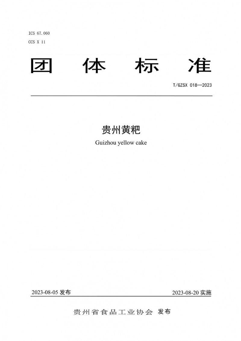 貴州省食品工業協會團體標準T/GZSX018-2023《貴州黃粑》 修訂公告(2023年第1號)