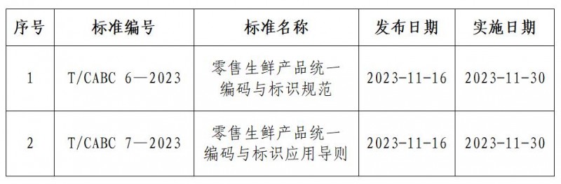 1.《零售生鮮產(chǎn)品統(tǒng)一編碼與標識規(guī)范》(T/CABC 6—2023)團體標準部分內(nèi)容