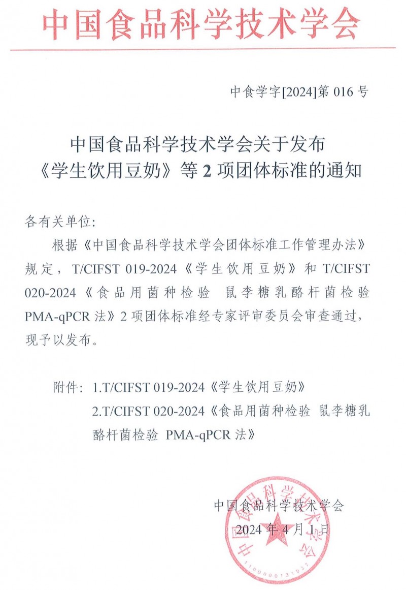 以上為中國食品科學技術學會關于發布《學生飲用豆奶》等2項團體標準的通知(中食學字[2024]第016號)的檢測服務介紹,如有其他疑問可聯系在線工程師!